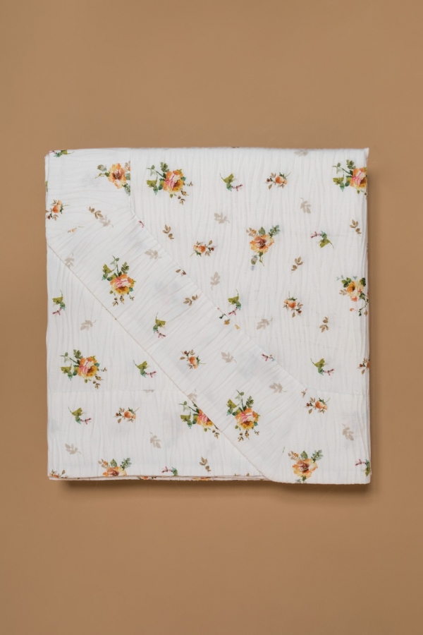 Copriletto disegno floreale in tessuto jacquard a rilievo. Realizzato artigianalmente e 100% Made in Italy.