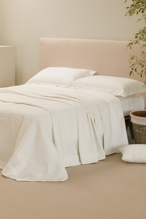 Copriletto in tessuto jacquard con bordo. Realizzato artigianalmente e 100% Made in Italy.